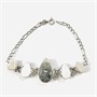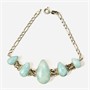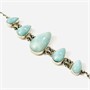 Naturalisticky pojatý náramek s důrazem na články osazené stupňovitě velkými přírodními larimary brusu kapková mugle, fasováno v plně přiléhajících obrubách, připojena nepůvodní řetízkovina vazby "figaro". Solidní stříbrnická práce z konce 20. století, články patrně středoamerické provenience, řetízek italského původu.