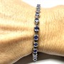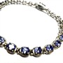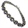 Velmi půvabný, stříbrný článkový náramek. Šperk byl zhotoven ze sterlingového stříbra (925/1000), o celkové váze 8,99 g. Každý z článků je osazen fazetově broušeným tanzanitem oválného tvaru. Další kameny mají sytě fialový odstín a jsou přírodního původu. Délka 18 cm. Náramek je zajištěn proti ztrátě pojistným jazýčkem. Perfektní stav.