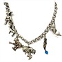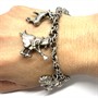 Velmi starý, stříbrný náramek zdobený sedmi většími ověsy. Náramek byl zhotoven v kombinaci stříbra 830/1000, 835/1000 a 800/1000. Jeden z ověsů (růže) byl zhotoven ze stříbřeného obecného kovu. Celková váha šperku 27,11 g. Délka 19 cm. Osvědčení Puncovního úřadu. Výborný stav.