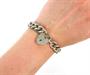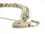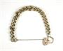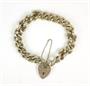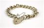 Stříbrný přátelský náramek ryzosti 925/1000 se zámkem ve tvaru srdce jako uzávěrem. U uzávěru pojistný řetízek. Celková hmotnost: 39,25 g. Průměr zavřeného náramku: 6,5 cm. Birmingham 1976. ---