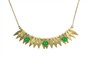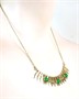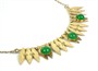 Pozlacený náhrdelník ze stříbra ryzosti 900/1000 zdobený chryzoprasy pochází ze 60.-70. let 20. století. Značeno KZT (Kovozávody Turnov) a puncem zajíc 3. Délka náhrdelníku je 44 cm. Celková hmotnost 9,13 g.