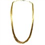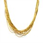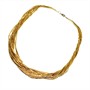 Velmi půvabný náhrdelník ze silně pozlaceného stříbra. Šperk tvoří dvě desítky jemných řetízků, které vytvářejí drobné články. Řetízky jsou spojeny v uzávěru. Ryzost 925/1000, celková váha 16,97 g. Délka 46 cm. Výborný stav.