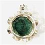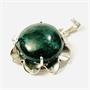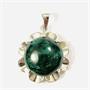Větší, výrazný závěs v podobě osmilistého květu, osazeno masivní kulatou muglí přírodního sytě zeleného malachitu. Kvalitní západoevrospká zlatnická práce z poslední třetiny 20. století.