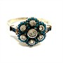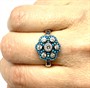 Nevšední, jemný prsten. Šperk byl zhotoven ze stříbra sterlingové ryzosti 925/1000, o celkové váze 3,28 g. Drahé kameny jsou seskupeny do tvaru květu. Kameny jsou pečlivě fasovány. Velikost 61. Výborný stav.