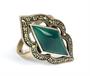 Prsten ze stříbra ryzosti 925/1000 zdobený zeleným achátem a markazity.
