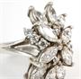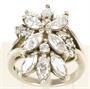 Stříbrný prsten ryzosti 925/1000 zdobený několika čirými kameny různé velikosti. Celková hmotnost: 7,04 g. Velikost: 52. ---