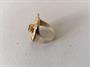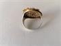 Zajímavý prsten tvoří stříbrná obroučka s barokně vyřezávanou hlavou z obecného kovu osazenou broušeným tmavším citrínem. Celková hmotnost 4,25 g, obroučka zhotovena ze stříbra ryzosti 835/1000. Velikost prstenu 51.