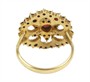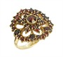Prsten ze zlaceného stříbra ryzosti 900/1000 s českými granáty. Celková hmotnost je 4,21 g. Velikost 54.