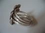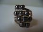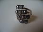 Výrazný stříbrný prsten osazený drobnými hematity, stříbro 925, celková hmotnost 5,9 g, velikost prstenu 55, země původu Polsko.