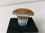 Nepřehlédnutelný stříbrný prsten s velkým baltským medovým jantarem, ve stylu art deco, zhotovený ze stříbra 875/1000, celková hmotnost 6,85 g, délka jantaru 3,2 cm, velikost prstenu 56.