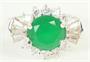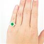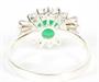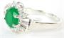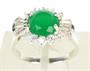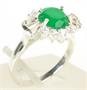 Stříbrný prsten ryzosti 925/1000 zdobený syntetickým kamenem smaragdové barvy, který je kolem dokola lemován deseti menšími čirými kameny. Celková hmotnost: 3,76 g. Velikost: 57. ---