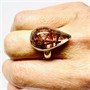 Nadčasový, moderní, nevšední stříbrný prsten. Šperk zdobí hladce, do tvaru slzy vybroušený křišťál, bohatě inkludovaný červeným rutilem. Kámen přírodního původu z Madagaskaru je po celém obvodu zasazen do hladké cargle. Stříbro ryzosti 925/1000, celková váha 6,74 g. Velikost 53. Velmi dobrý stav.