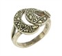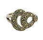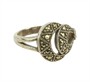 Asymetrický prsten ze stříbra ryzosti 925/1000 zdobený markazity. Velikost prstenu je 55. Celková hmotnost 5,48 g.