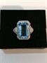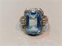 Stříbrný art deco prsten s bleděmodrým kamenem (skleněná napodobenina akvamarínu), zhotoven ze stříbra ryzosti 800/1000, celková hmotnost 3,7 g, velikost prstenu 54.