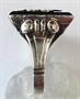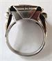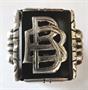 Stříbro, onyx. Kroužek, koruna, monogram ze stříbra. Ryzost Ag 900 / 1000. Čistá hmotnost 5 gramů. V horní části reliéfně tvarovaný. Na čelní straně vložená onyxová destička. Zdobená reliéfním monogramem B. B. . Celková hmotnost 5,95 gramů. Československo, minulé století. Velikost prstenu 51.