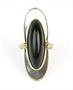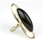Elegantní prsten ze stříbra ryzosti 900/1000 zdobený oválným černým onyxem broušeným do mugle. Velikost prstenu: 52. Celková hmotnost prstenu: 5,10 g.