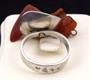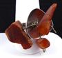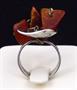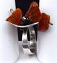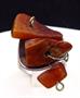 Kroužek prstenu, trojúhelníkovité lůžko ( koruna ) prstenu - z leštěného stříbra. Ryzost Ag 800 / 1000. Uchycení kamenů ze žlutého obecného kovu. Celková hmotnost 7,20 gramů. Kroužek v dolní části rozšířený. Hlava prstenu miskovitého, trojúhelníkovitého tvaru. Uprostřed uchycené tři kousky jantaru na přívěscích. Značený : československým puncem pro cizí zboží ( lilie a písmeno Č. ) , značka výrobce ( WWB v trojúhelníku ) , číslo 2. , polský punc ( hlava dívky v šátku, číslo 3. , písmeno K ) . Krakov, Polsko 1963 - 1986. Velikost prstenu 55.