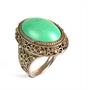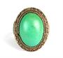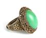 Prsten ze stříbra ryzosti 800/1000 s velkým zeleným kamenem, zdobený jemným filigránem. Punc lilie. Velikost prstenu cca 62 s možností zmenšit či zvětšit.
