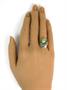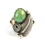 Secesní prsten ze stříbra ryzosti 925/1000 zdobený kamenem zelené barvy.