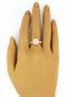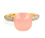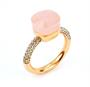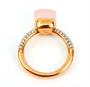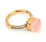 Prsten ve stylu Pomellato ze zlaceného stříbra ryzosti 925/1000 (punc kozlík) zdobený růžovým kamenem a zirkony (zirkon chybí, zohledněno v nízké ceně). Velikost 57. Celková hmotnost 6,44 g.