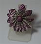Stříbrný prsten ve tvaru velkého květu osázen turmalíny, stříbro 925/1000, hlava prstenu 4,8cm, velikost 55, hmotnost 37,3g