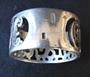 Stříbro. Čistá hmotnost 5,40 gramů. Ryzost Ag 875 / 1000. Kulatého tvaru. Po obvodu prořezávaný nápis v azbuce - Moskva 80. Značeno puncem a monogramem zlatníka. Rusko, Moskva, rok 1980. Punc platný v období 1958 - 1992. Průměr 2,2 cm.