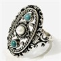 181673Stříbrný pseudohistorizující prsten s tyrkysy a perlou