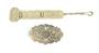 Brož ze stříbra ryzosti 900/1000 je zdobena gravírováním. Značeno KP. Rozměry brože jsou 5 x 3 cm. Její hmotnost je 8,04 g. Šatlén je zhotoven ze stříbra ryzosti 800/1000 a je také zdoben gravírováním. Značeno BM. Hmotnost šatlénu je 17,64 g.