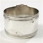 Velice půvabný velký kroužek na ubrousek z období francouzské secese, středu dominuje prázdná kartuše pro případný monogram, jež je rámována stylizovaně vinutými listy ginkgo biloba, které se po krajních linií nesou i po širším obvodu, jemně plasticky modelováno s efektním přesažením okraje. Designem velmi zdařilá, solidní francouzská stříbrnická práce z dílny Henriho Soufflota z přelomu 19. a 20. století.