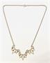 Velmi půvabný stříbrný náhrdelník v secesním stylu. Tři prolamované články v typických secesních organičtějších křivkách a jemnými zdobnými reliéfy. Honosný řetízek typu "valis". Elegantní a vkusný šperk z 60. až 70. let 20. století, který velmi dobře parafrázuje estetiku a křivky secesního šperku. Kvalitní zlatnická práce z dílen československých klenotnických družstev.