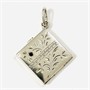 Větší, kosodélný přívěšek z období secese, který slouží též jako medailon na 2 fotografie. Frontální strana s jemným florálním gravírováním a doplněno českým granátem kulatého routového brusu, zadní strana ponechána hladká. Kvalitní vídeňská zlatnická práce z přelomu 19. a 20. století.
