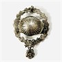 Zhotoveno z nezlaceného stříbra o ryzosti 800/1000; nevšední kombinace rakousko-uherských punců punc S-33 (pes 3) i S-34 (lev 4) s písmenem "P" (značící budapešťský puncovní úřad) a prvorepublikového dovozového puncu S-43 (lilie s Č) a mistrovská značka na ouškách. Hmotnost 5,98 g, celková délka 41 mm, šířka 26 mm. Centrální kámen i některé další sekundárně osazeny a připevněny i lepidlem, zohledněno v ceně, ponecháno s přirozenou patinou, celkově v dobrém stavu.