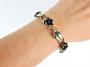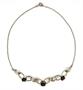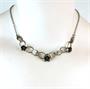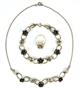 Souprava s motivem růžiček, designerská značka TeKa - náhrdelník, náramek a prsten ze stříbra ryzosti 835/1000. Velikost prstenu: 53. Délka článkového náramku: 21 cm. Délka řetízku: 42 cm. Celková hmotnost: 28,34 g (náhrdelník 10,28, prsten 3,42 a náramek 14,64 g).