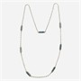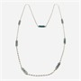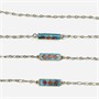 Jemný, starožitný náhrdelník s obdélnými články, které jsou oboustranně zdobeny modro-červeným smaltem, válcovité zapínání stejného provedení, řetízek vazby "anker". Orientální ruční zlatnická práce z druhé třetiny 20. století dovezená na naše území ve stejném období.