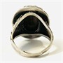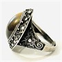 Zhotoveno z nezlaceného stříbra o ryzosti 900/1000; československý dovozový punc S-43 (lilie s Č), ryzostní číslo a značení "SILVER" zevnitř šíny. Hmotnost 8,27 g, nastavitelná velikost okolo 62, délka hlavice 26 mm, šířka 21 mm. Ponecháno s přirozenou patinou, lze vyčistit, stopy nošení, kámen v obrubě volnější (drží však bezpečně), celkově v dobrém stavu.