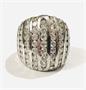 Výrazný, nepřehlédnutelný koktejlový prsten, který je v devíti svislých řadách osazen 71 čirými kameny kulatého briliantového brusu. Na bocích zvýrazněno matovanými plochami. Extravagantní moderní šperk připomínající svým tvarem discokouli. Velmi kvalitní středoevropská či západoevropská práce z počátku 20. století.