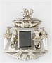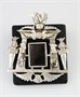 stříbrný závěs/brož s černým onyxem, schématicky zřejmě znázorňuje faraona Amenhotepa IV. s manželkou Nefertiti, Ag btto 20,01 g/800/1000, Egypt, kolem r. 1930, původní egyptské puncovní značky, atest Puncovního úřadu; rozměry 5,3 x 4,7 cm