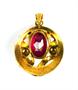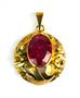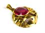 Závěs ze zlaceného stříbra ryzosti 900/1000 zdobený červeným kamenem. Rozměry bez závěsného očka jsou 2,4 x 2,4 cm. Celková hmotnost 4,49 g.