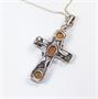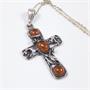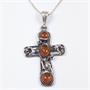 172172Stříbrný závěs s jantarem ve tvaru k říže s řetízkem