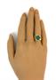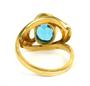 Prsten výrazného tvaru s blankytně modrým kamenem zhotovený ze stříbra ryzosti 900/1000, silně pozlacen. Prsten pochází ze 60. let 20. Velikost prstenu je 53. Celková hmotnost 3,98 g.