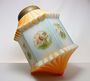 Okouzlující svítidlo z opálového skla inspirováno tvary papírových lampiónků z Číny a Japonska s dekorem pohádkových ptáků. Porvch částečně malovaný oranžovu vystínovanou barvou. Pravděpodobně ve 30-40tých letech provedly sklárny v severních Čechách. Dobrý stav, rozměr v. 30cm, prům. 24cm