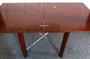 Dubová dýha, dubový masiv, chromovaná ocel. Autor modelu: Jindřich Halabala (1903-1978) pro Spojené uměleckoprůmyslové závody v Brně. Publikováno v knize: Jindřich Halabala a Spojené uměleckoprůmyslové závody v Brně, obrazová příloha strana 123, vydavatelství ERA, Muzeum města Brna a Muzeum umění Olomouc. Čtvercový stůl s výsuvnou dvojitou otočnou deskou s dubovou tmavší dýhou. Čtyři hranolovité nohy z dubového masivu, v přední části zaoblené. Spojené mezi s sebou křížovou trubkovou trnoží z pochromované oceli. Řada H se v UP závodech vyráběla v období mezi lety 1928 - 1935. Šelaková politura. Na horní desce odborně restaurátorsky opravena na dvou místech dýha. Československo 1928 - 1935. Výška 76 cm, šířka 80 cm, hloubka 80 cm, v rozloženém stavu 160 cm.