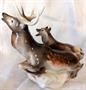 Porcelánové sousoší Štvanice je značené na spodní straně růžovým trojúhelníčkem s písmenem D a mimo tuto značku jěště natištěnou modrou značkou Poyal Dux hand painted. Takto značila své výrobky porcelánka Duchcov. Sousoší je zcela nepoškozené, vysoké v nejvyšší části 23 cm, o rozměru 28 x 14 cm.