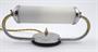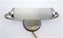 Niklovaná mosaz, mléčné sklo a tmavě mořené dřevo. Období a styl: funkcionalismus. Nástěnné funkcionalistické stínidlo s bočními klenutými rameny držícími stínidlo z mléčného skla ve tvaru tubusu. Originální umělohmotný vypínač. Funkční, nově elektrifikováno. Československo 1930 - 1950. Rozměry: šířka 25,5 cm, hloubka 11,5 cm a výška 9 cm.