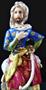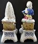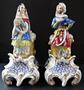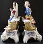 Porcelán bílý, malovaný, zlacený a glazovaný. Dvě sošky. Jedna soška s motivem arabského panovníka, s turbanem a šavlí. Druhá soška s motivem sedící dívky, s vějířem a závojem. Rokokově tvarované velké podstavce, se zlaceným a modrým reliéfním ornamentem. Neznačeno. Čechy 1840 - 1860. Výška 25 cm, šířka 11,5 cm, hloubka 13 cm.
