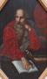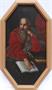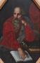 Olej na dřevěné desce 46 cm x 22 cm. Přiloženo osvědčení Národního památkového ústavu České republiky. Polopostava svatého Jeronýma v jasně červeném rouchu, přes levé rameno a hruď má přehozený šedý plášť. Hlava s naznačenou svatozáří s dlouhým prošedivělým plnovousem je pootočena k pravému rameni a svatý Jeroným si ji podpírá levou rukou sevřenou v pěst. Loktem levé ruky se opírá o zavřenou knihu. Pravou rukou světec ukazuje na text v rozevřené knize ležící před ním na stole. V pozadí je zachycen zavěšený kardinálský klobouk. Obraz je osazen v novodobém osmibokém světlém dřevěném rámu, jenž je členěn ústupkovou profilací. Střední Evropa, přelom 19. a 20. století. Celkový rozměr s rámem 52 cm x 30 cm.