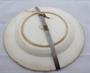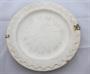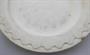 Bílá glazovaná jemná kamenina. Mělký talíř zdobený na okraji reliéfním motivem krajky. Značený zespodu : vtlačená písmena F. L. W ? in Teinitz, věnec s knížecí korunkou. Kovový úchyt. Při jedné straně mírně poškozený u úchytu. Týnice, Teinitz, Čechy 1830 - 1866. Průměr 24 cm.