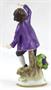 Bílý, barevný, ručně malovaný a zlacený porcelán. V rokokovém stylu. Älteste Volkstedter Porzellanmanufaktur, Volkstedt Rudolstadt. Porcelánová figurka chlapce v taneční póze u keře s modrým hroznem vína a zelenými listy. Kulatý rokokově tvarovaný podstavec se zlatými rokaji a linkami. Značeno zespodu: modrá písmena s korunou a letopočtem 1762, ručně psané číslo malíře. Německo minulé století. Výška 11 cm.