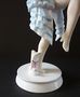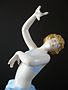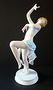 Porcelán bílý,malovaný,glazovaný,stříbrný.Soška stojící mladé polonahé dívky v taneční póze,se zaklánějícím se tělem,u nohou s art-dekově tvarovanou rostlinou.Značeno zespodu-Vídeň,minulého století,Rakousko.Výška 27 cm,šířka 9 cm.