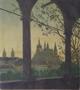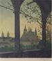 Barevný lept na papíře 200 mm x 175 mm. Signováno vpravo dole. Vlevo dole tužkou číslo 46. Soupis Novák, číslo 331. Pohled na Hradčany z Belvederu. V dřevěném jednoduchém rámu mahagonové barevnosti se zlatou vnitřní linkou, s paspartou a sklem. Československo, Praha, rok 1920. Celkový rozměr s rámem 42,5 cm x 34 cm. Tavík František Šimon (1877-1942).